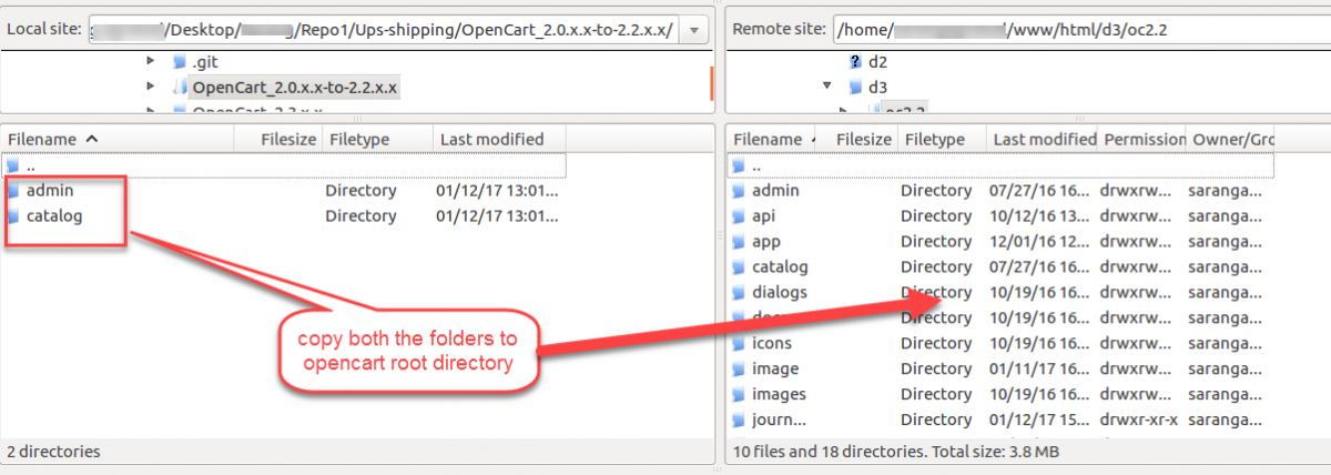 To install this add-on please follow every step carefully. First, you need to upload both admin and catalogue folders into the open-cart root folder directory as shown in below screenshot.