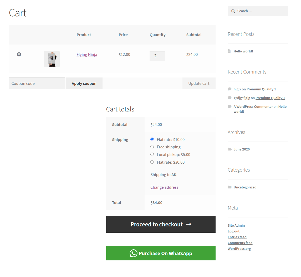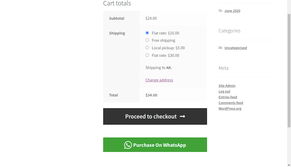 WhatsApp Button On Cart Page