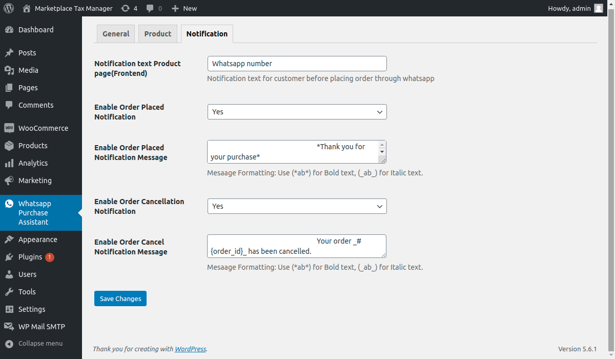 - Notification Text Product Page – Put the notification message to show the customer before placing the order through WhatsApp.