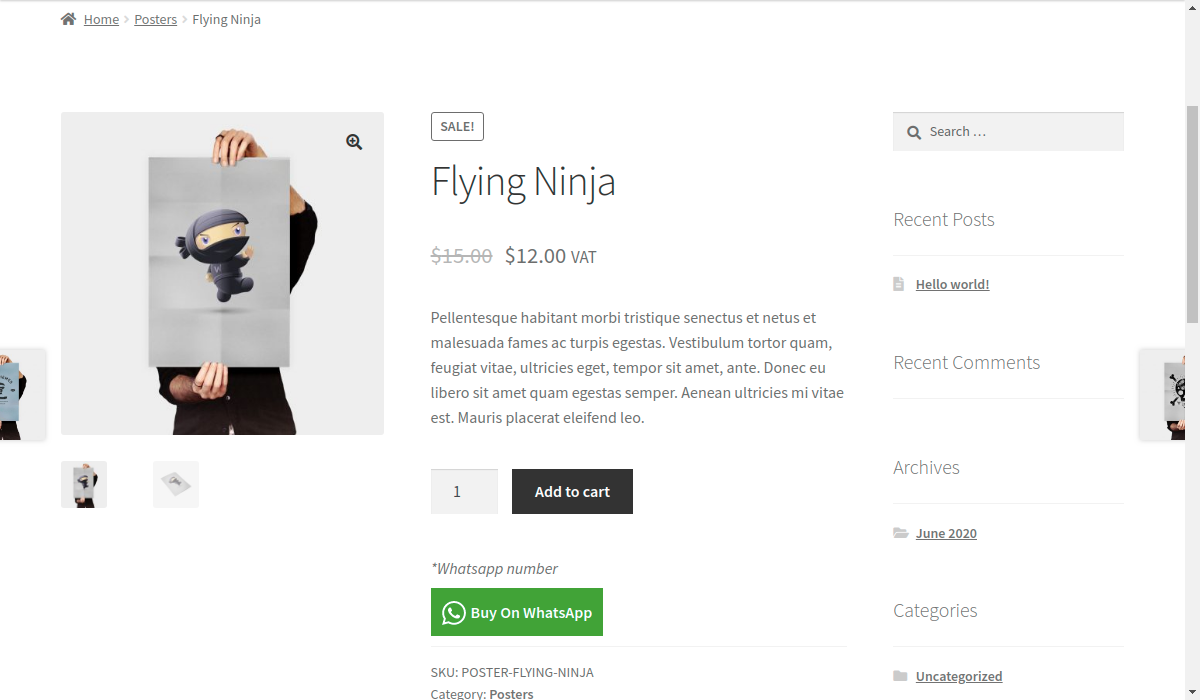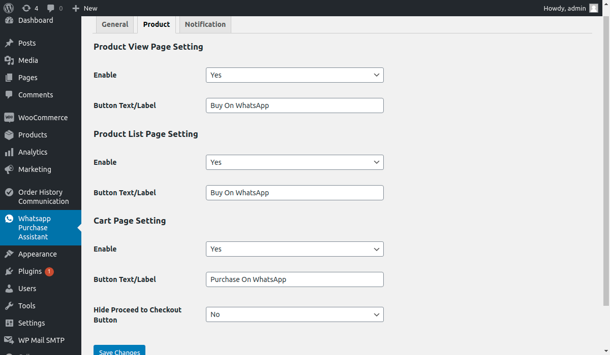 - The admin can enable or disable buy on WhatsApp button.