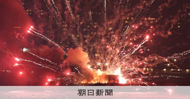 花火打ち上げの台船2隻が炎上、大会が中止 1人が病院に搬送 横浜