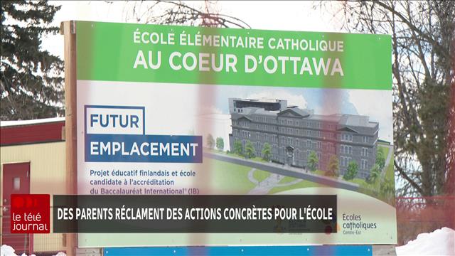 Un système de chauffage défaillant, un nombre de toilettes insuffisant et aucun gymnase ni bibliothèque. Ajoutez à cela un projet d’une nouvelle école élémentaire catholique qui stagne. Voici la réalité de près de 200 élèves francophones d'Ottawa. Un regroupement de parents francophones du centre-ville d’Ottawa lance un cri du cœur en pleine campagne électorale ontarienne. Il demande un engagement concret de financement aux partis et candidats pour remplacer l’école vétuste Au Cœur d’Ottawa qui accueille 199 enfants âgés de 4 à 12 ans. Cet établissement du Conseil des écoles catholiques du Centre-Est (CECCE) se trouve dans des locaux temporaires depuis 2017 au 88 rue Main. L'école Au Coeur d'Ottawa se trouve en ce moment dans des locaux loués temporairement à un conseil scolaire catholique anglophone. Photo : Radio-Canada / Maxim Allain Ce dernier est coprésident du regroupement de parents qui s’impatientent devant la lenteur de l’achèvement des travaux des futurs locaux de l’école qui seront situés près de l’Université Saint-Paul. Le ministère de l’Éducation et le CECCE avaient annoncé l'achat de l'édifice patrimonial Deschâtelets en 2020 avec une ouverture prévue à l’automne 2021. Un montant de 5,7 millions de dollars était prévu pour ces travaux et le déménagement. Depuis cette annonce, des plans d’architectures intérieures ont été approuvés. Le désamiantage et la stabilisation du bâtiment ont été terminés. Le conseil scolaire a soumis une demande de financement supplémentaire en avril 2022 afin de pouvoir conclure les travaux. Selon le conseil scolaire, il reste Le Conseil des écoles catholiques du Centre-Est (CECCE) avait dévoilé en 2020 ce dessin du futur domicile de l'école Au Coeur d'Ottawa. (Photo d'archives) Photo : Gracieuseté : CECCE La réponse du gouvernement de l’Ontario se fait toujours attendre. Surtout que les parents ont vu passer une annonce du gouvernement de l’Ontario le 27 janvier dernier. Une enveloppe de 1,3 milliard de dollars a été mise de côté pour la construction de plusieurs écoles à travers la province. Il n’y avait toutefois rien au menu pour les travaux à compléter du nouveau domicile de l’école Au Cœur d’Ottawa. Son financement doit venir d’une enveloppe différente qui n’avait pas été encore approuvée au moment du déclenchement des élections, explique le CECCE. Deux lettres envoyées au ministère de l’Éducation par le regroupement de parents sont restées sans réponse dans la dernière année. Joint par Radio-Canada, le ministère de l’Éducation de l’Ontario indique que Du côté du CECCE, la surintendante France Goulard rappelle que l’école Au Coeur d’Ottawa est Mme Goulard ajoute que le conseil scolaire a répondu à toutes les questions du ministère. L'école Au Coeur d'Ottawa ne possède aucune structure de jeu dans sa cour actuelle. Photo : Radio-Canada / Maxim Allain Quant aux principaux candidats dans la course électorale dans la circonscription d’Ottawa-Centre, ils ont répondu aux parents être prêts à militer pour faire débloquer le financement additionnel. Marc-André Boivin, lui, garde espoir de voir sa fille effectuer sa rentrée scolaire de l’automne 2026 dans les nouveaux locaux de l’école Au Cœur d’Ottawa. Les autres parents et lui explorent toutes les avenues pour faire avancer le dossier. Dans leur lettre acheminée aux divers candidats, ils rappellent que l’article 23 de la Charte canadienne des droits et libertés prévoit le droit à l’éducation en français.