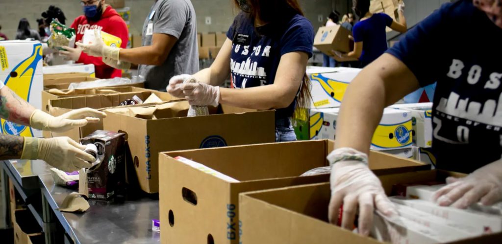 Top image: Volunteers prepare boxes at the Greater Boston Food Bank on Oct. 1, 2020. Iaritza Menjivar, The Washington Post via Getty Images
